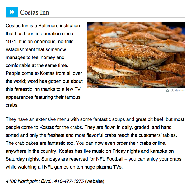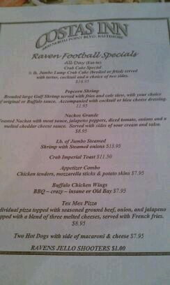 Costas Inn, located in Baltimore, MD, is a seafood lover's paradise offering a wide range of appetizers, soups, and all-time favorites. From their renowned crab dishes like crab cocktails and crab cakes to comforting soups like cream of crab and Maryland crab, every bite is a burst of fresh, flavorful seafood goodness. The ambiance is casual, with options for happy hour specials and outdoor seating. Customers rave about the attentive service and the quality of the dishes, especially the steamed crabs and crab cakes. Whether you're a crab enthusiast or looking for a delicious seafood meal, Costas Inn is a must-visit spot with a rustic charm that will have you coming back for more.